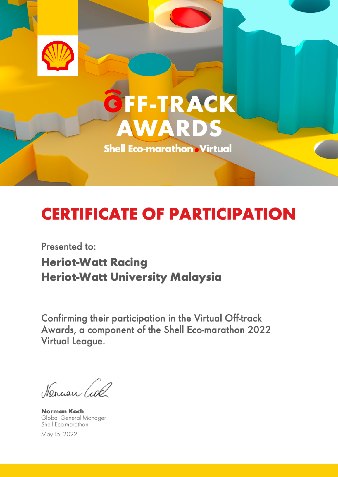 Shell Eco-Marathon Virtual Off-Track Award, Heriot-Watt University May 2022