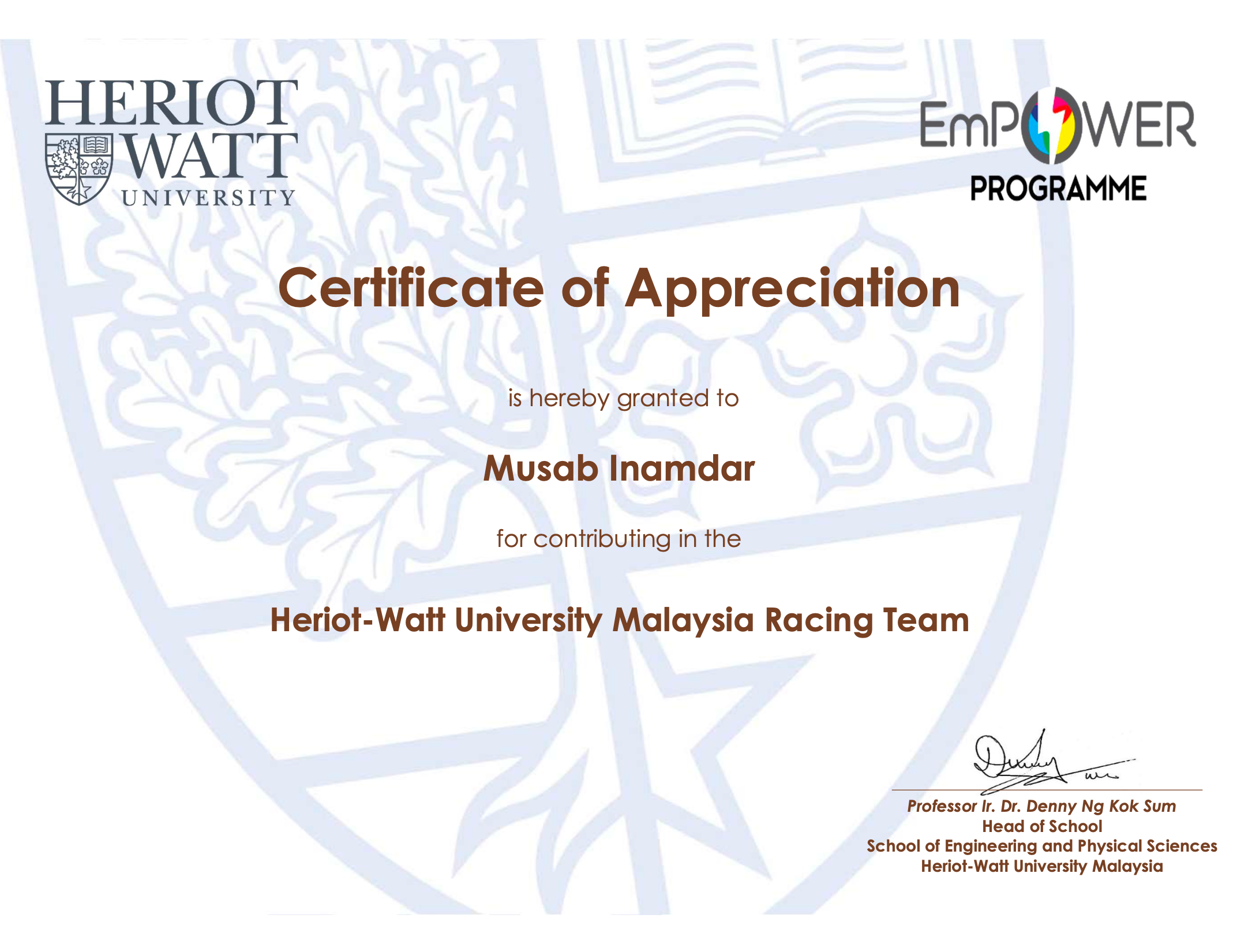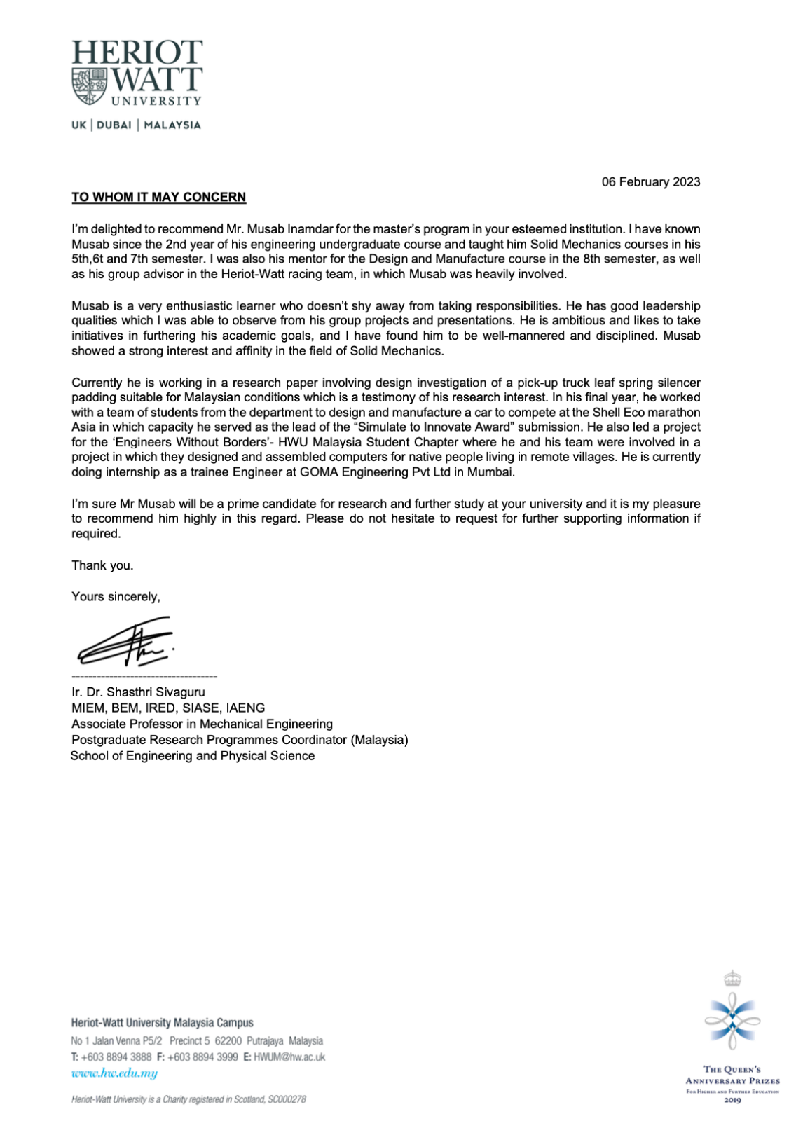 - Membership: Associate Member, Institution of Mechanical Engineers (IMechE) - Progressing towards CEng status