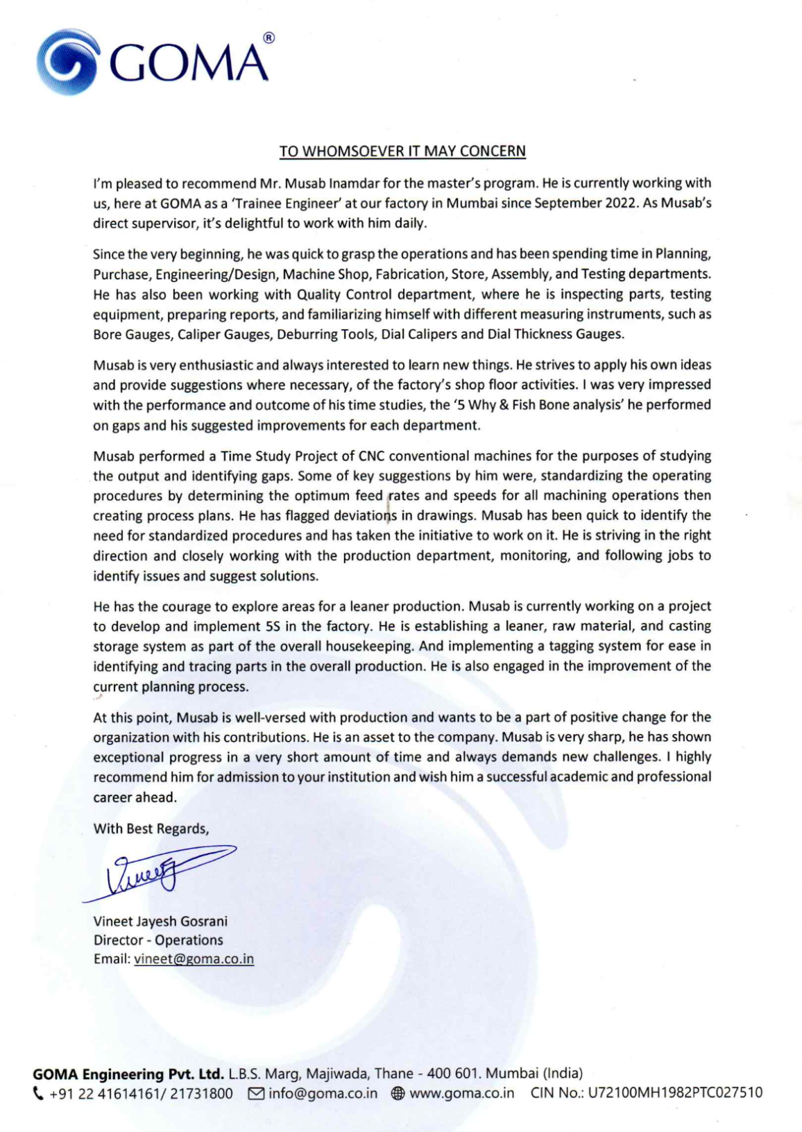 GOMA Engineering Pvt Ltd, Mumbai, India